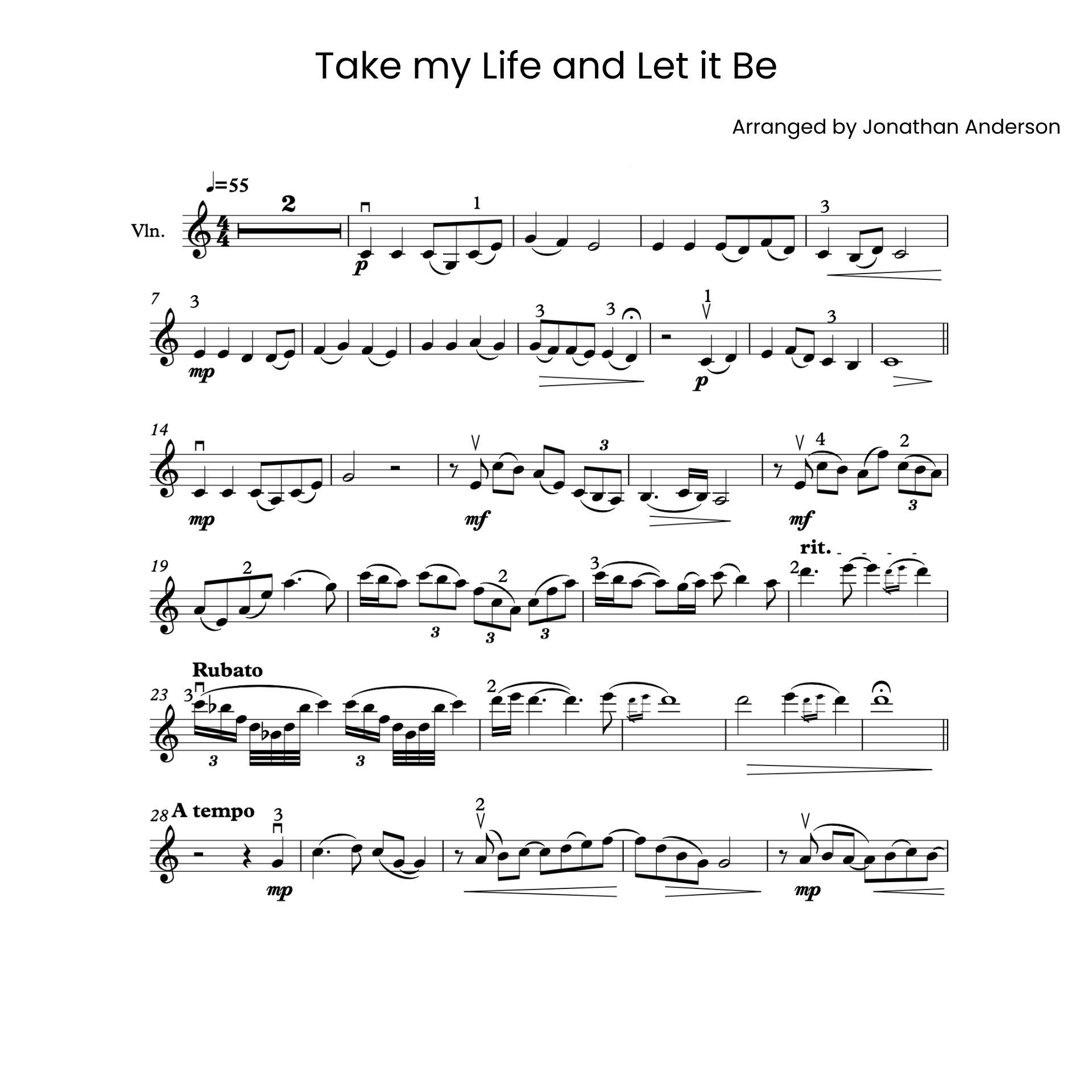 This is a digital download of the violin sheet music for Take My Life and Let It Be.