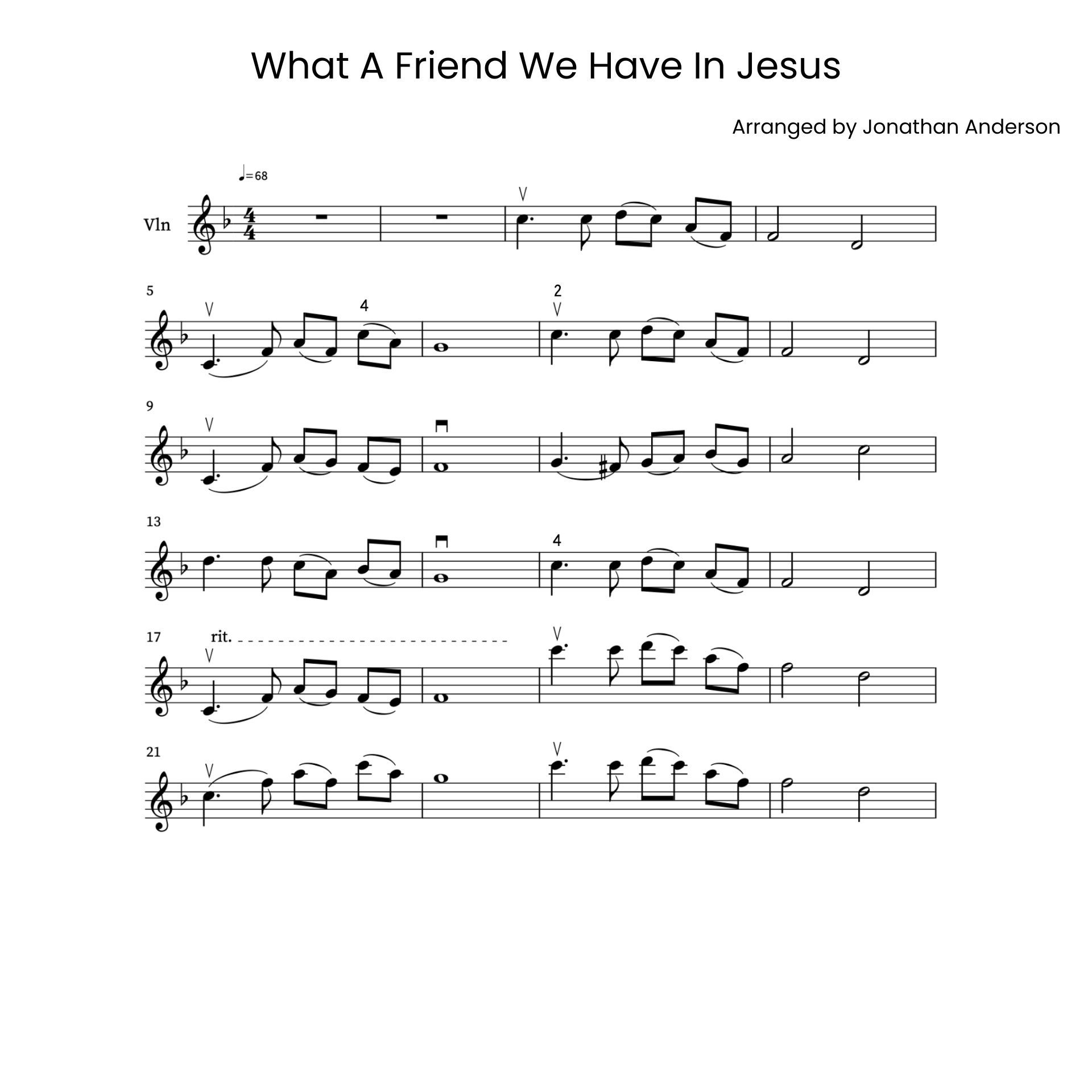 This is a digital download of the violin sheet music for What A Friend We Have in Jesus.